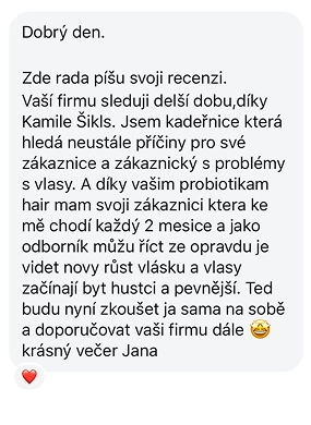 s ProBio, Anti-Aging Drinkem a Hair ProBio – produkty, které skutečně fungují. Každá recenze pochází přímo od našich zákazníků, kteří se s námi podělili o své výsledky prostřednictvím e-mailu a sociálních sítí. Vaše spokojenost je pro nás prioritou,