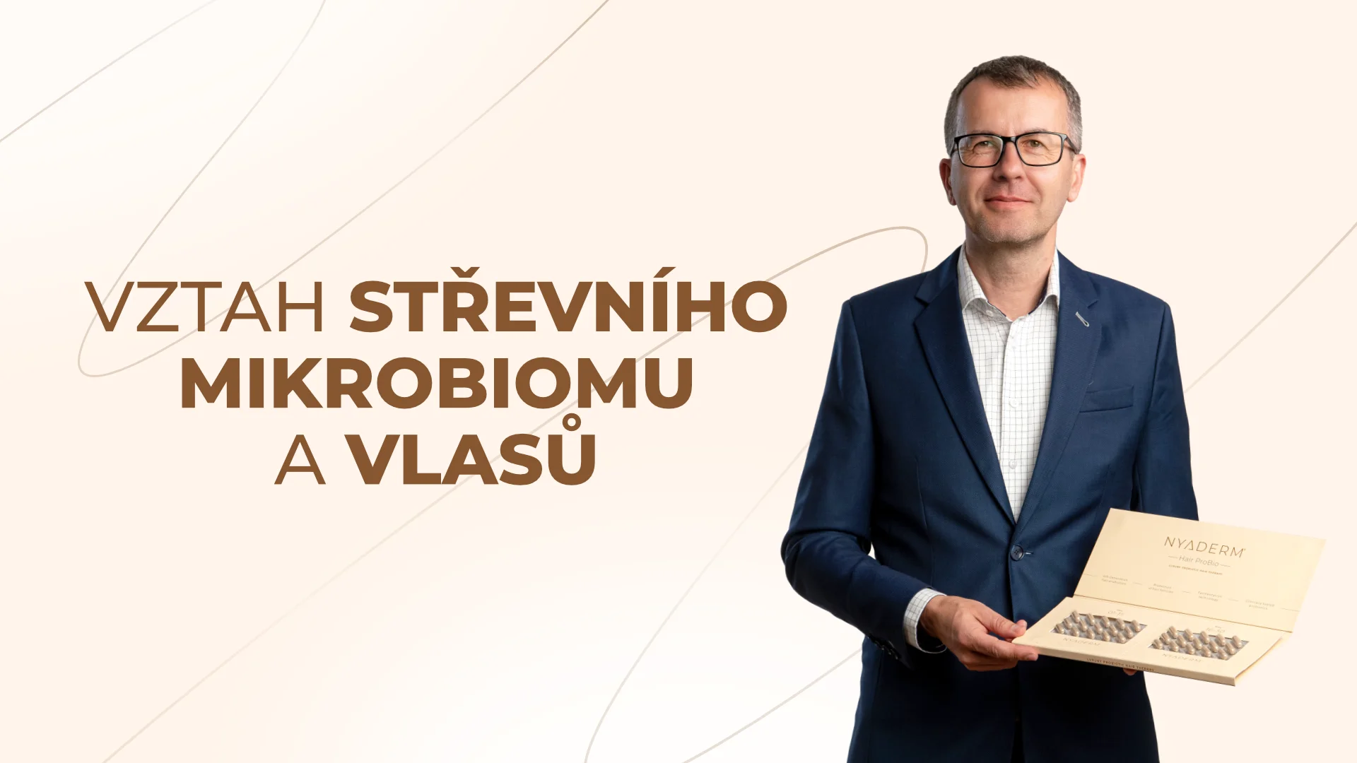 Střevní mikrobiom je ve vztahu se zdraví a kondicí vlasů naprosto klíčový. Poslechněte si rozhovor s vědcem a molekulárním biologem RNDr. Petrem Ryšávkou, který o vlivu mikrobiomu na vypadávání vlasů hovoří v tomto videu.