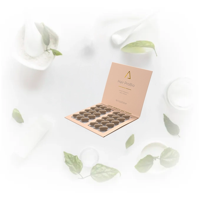 Produkt NYADERM® Hair ProBio je vhodný pro každého, kdo chce pečovat o své vlasy. NYADERM® Hair ProBio obsahuje probiotika, která podporují střevní mikrobiom a zároveň působí na osu střevo- vlasy.*